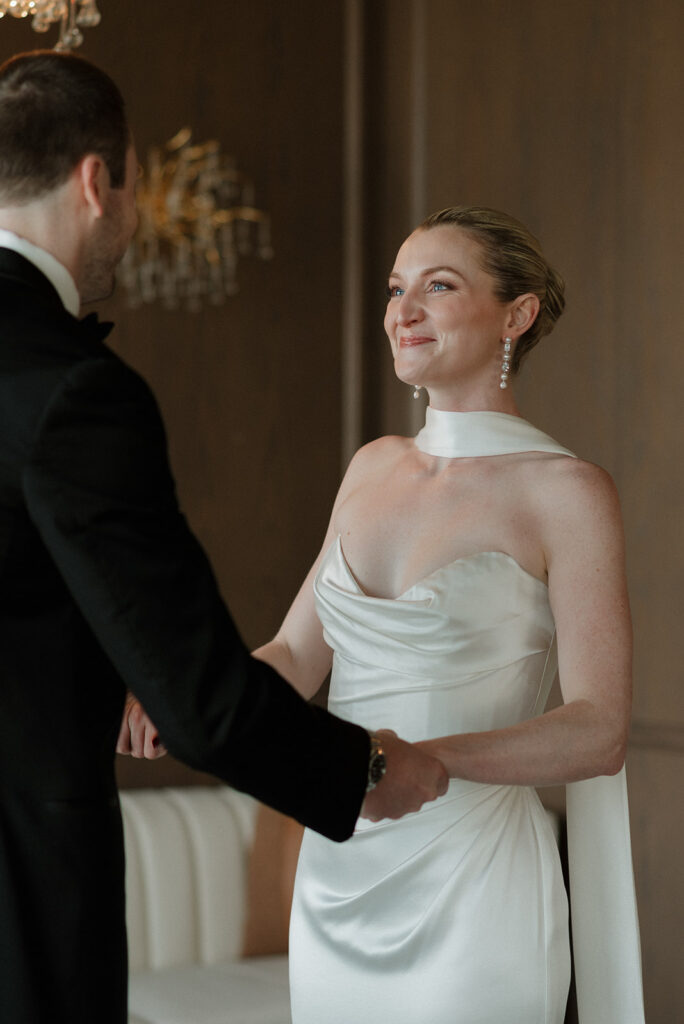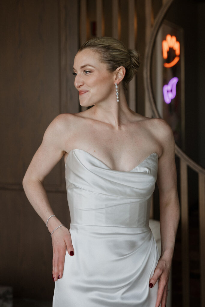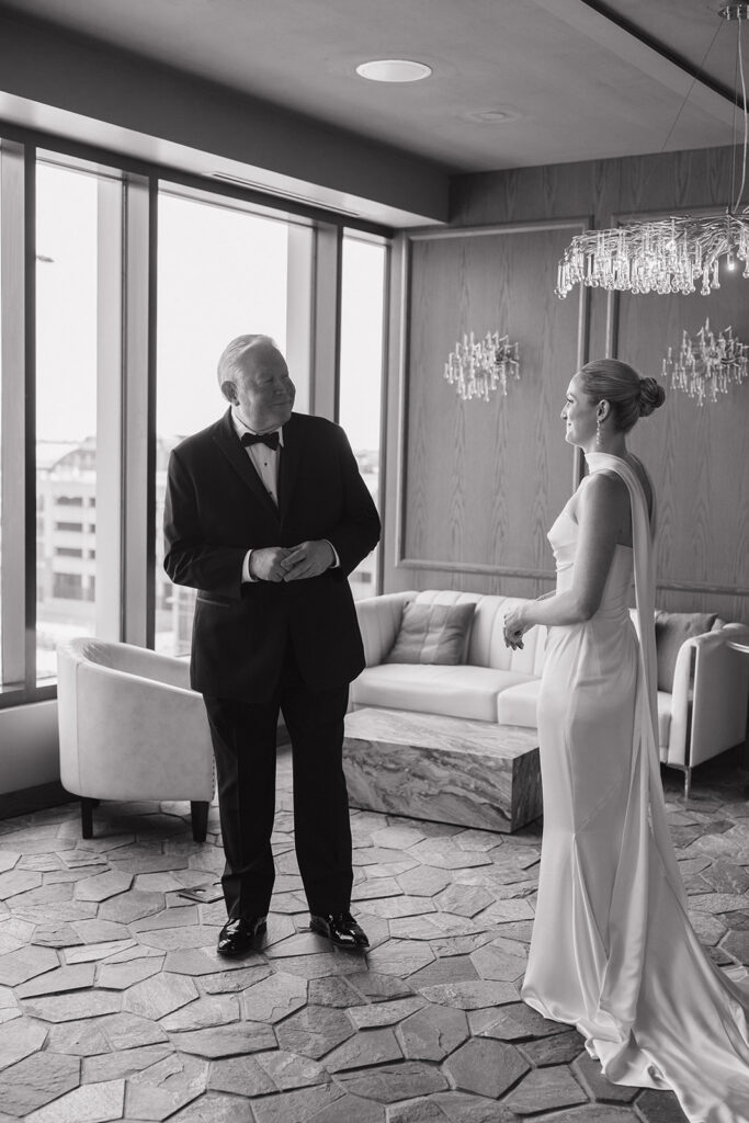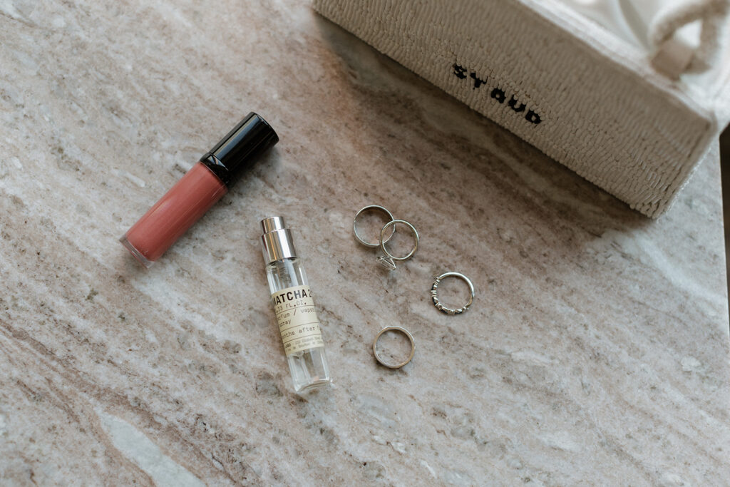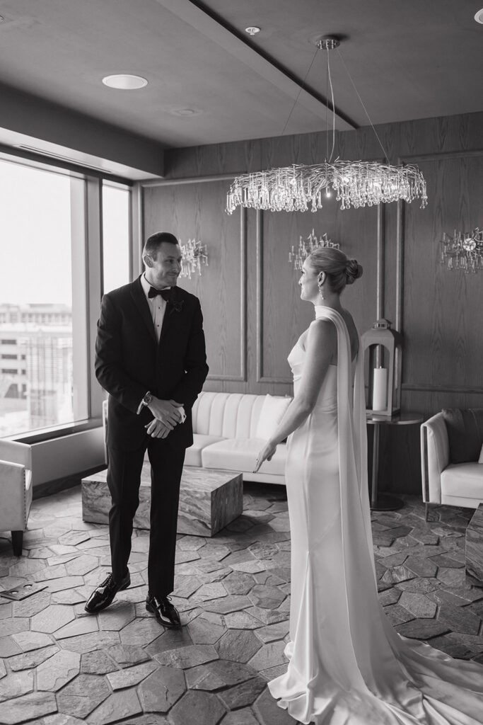 The day began at Hotel Indy, a boutique gem that perfectly blends mid-century modern design with a refined, upscale atmosphere. The textures and deep velvet tones of the suites provided a moody, editorial backdrop for Cassie and Scott’s bridal details.