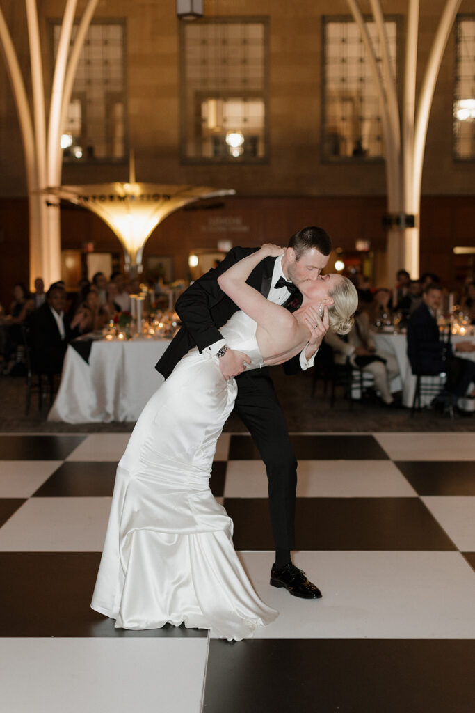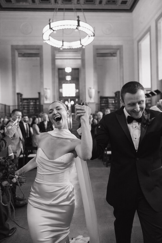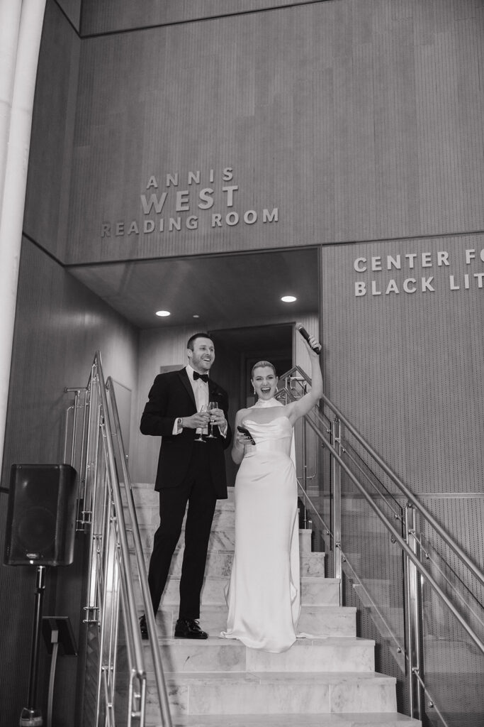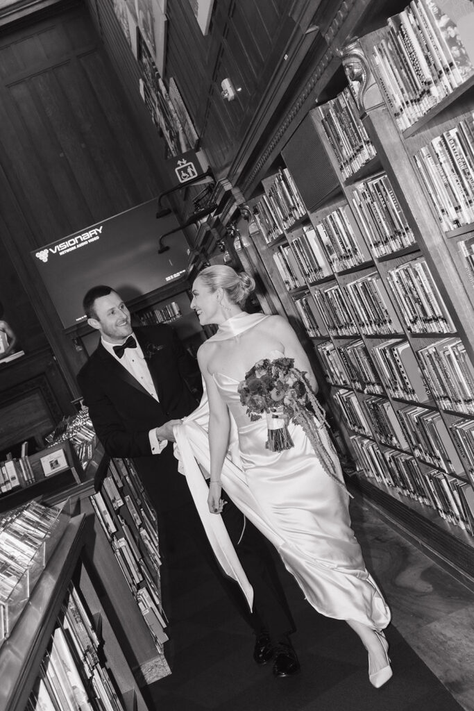 Dinner and dancing took place under the towering ceilings of the Simon Reading Room, where the dark wood and historical shelves felt incredibly cozy yet grand for a fall wedding. It was the perfect setting for a couple who wanted their wedding to feel like a piece of Indianapolis history.